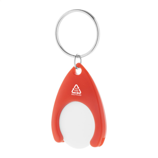 Schlüsselanhänger aus recyceltem ABS und recyceltem PS Kunststoff mit EKW-Chip und Metall-Schlüsselring. Chip-Größe: ø24×2 mm.