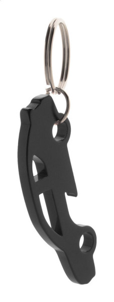 Schlüsselanhänger mit Flaschenöffner in Autoform. Material: Aluminium.