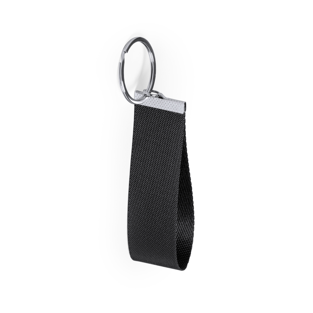 Schlüsselanhänger aus widerstandsfähigem Polyestermaterial mit Zubehör aus Metall. Erhältlich in einer breiten Palette von Farben.