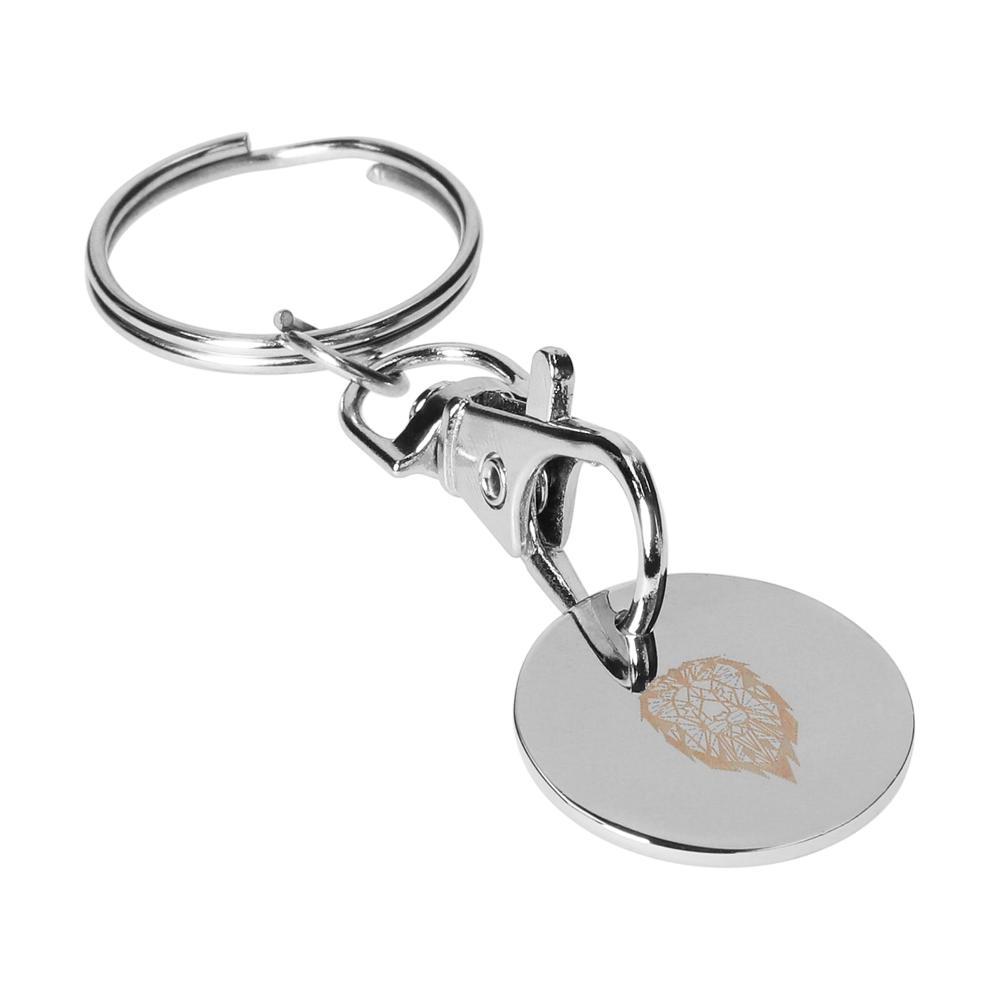 Immer am Haken. Nützlicher Einkaufswagenchip aus Metall mit Karabinerhaken und Schlüsselring.... mehr