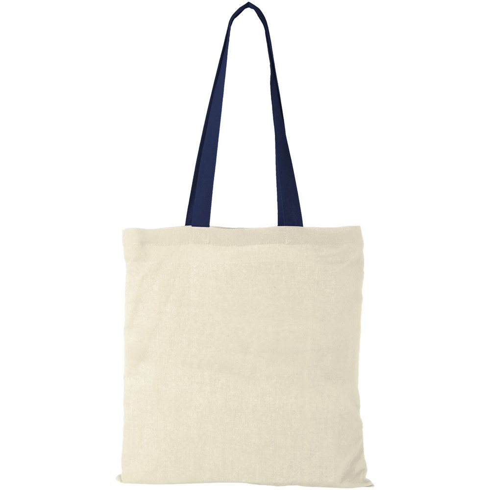 Mit ihren farbenfrohen Tragegriffen setzt diese Tasche auf jeder Veranstaltung, jedem Kongress und jedem Festival einen Farbakzent. Die Nevada Tote Bag aus 100 g/m² Baumwolle ist eine preisgünstige und leichte Tasche mit einem offenen Hauptfach. Mit ihrem Fassungsvermögen von 7 Litern eignet sich diese Tasche perfekt für den Transport von alltäglichen Dingen, vom Telefon und der Geldbörse bis hin zum Lieblingsbuch oder Tablet. Dank der 30 cm langen Griffe lässt sich die Tasche gut tragen. Hergestellt in Indien und OEKO-Tex zertifiziert. Belastbar bis zu 5 kg Gewicht.