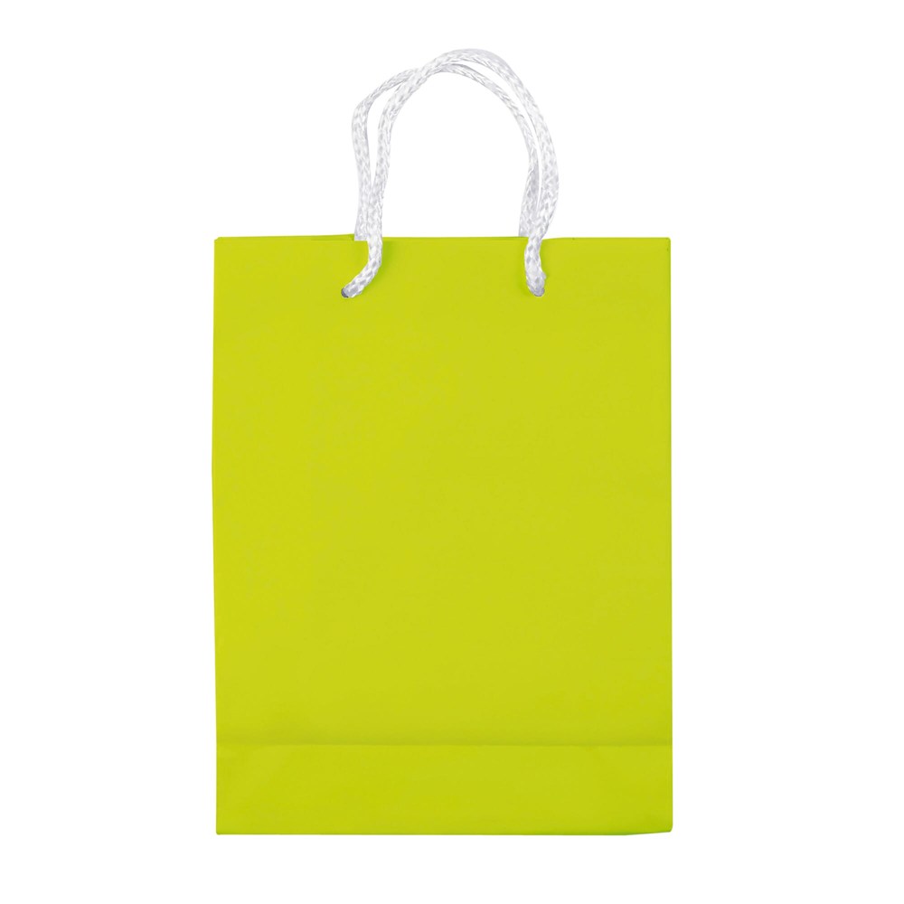 Kleine Papiertüte mit Seilgriffen. Erhältlich in mehreren Farben mit Riemen in Schwarz oder Weiß. Stark und für kleine Artikel geeignet. Glänzende Laminierung.