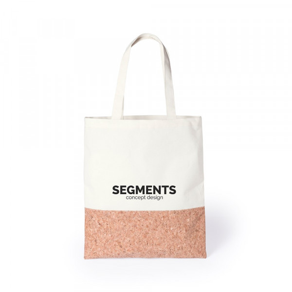 Tasche aus einer Kombination von natürlichen Materialien: Baumwolle und Kork. Mit langen Griffen und Steppnähten. Belastbar mit bis zu 8 kg.