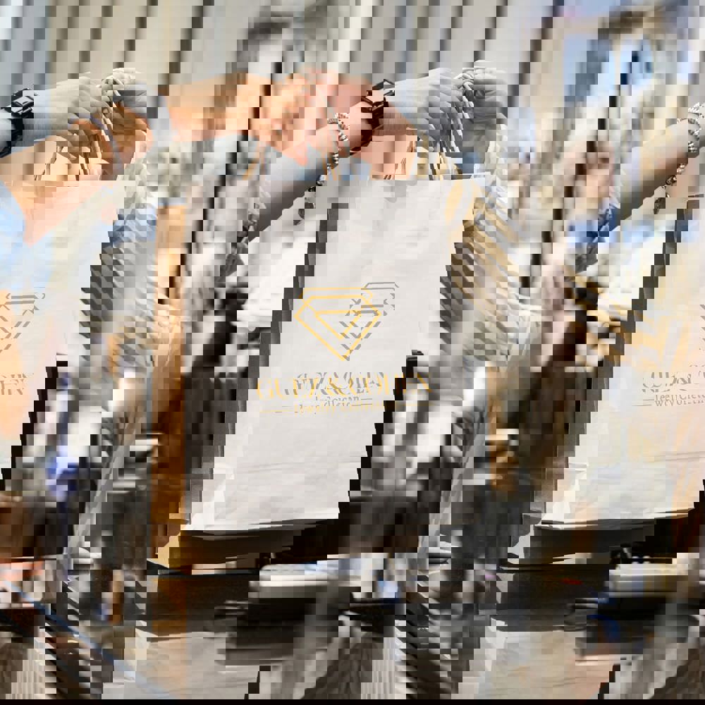Kraftpapiertasche mit Griffen aus gedrehtem Papier. FSC-zertifiziert und in Europa hergestellt. mehr