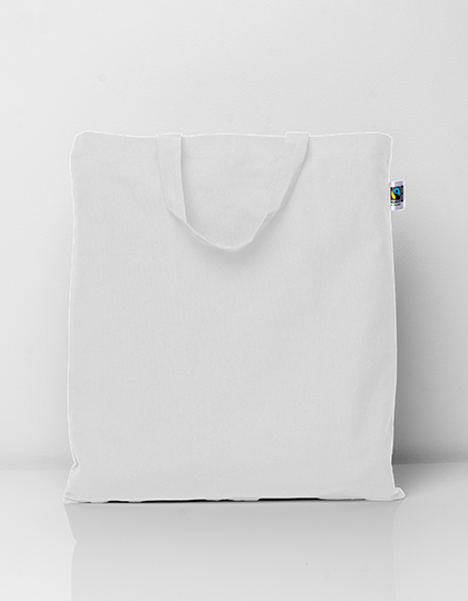 Fairtrade-zertifizierte Baumwolle | Kurze Henkel (ca. 35cm) | Nähte innen verkettelt | Kreuznähte | Fair-Trade Logo außen an Tasche gut sichtbar angebracht | 100% Bio-Baumwolle | Lieferung ohne Inhalt/Deko