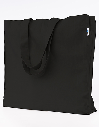 100% Fairtrade-zertifizierte Bio Baumwolle | Robuste Köperbindung | Breite, lange Trageriemen (L/B ca. 70/4,5 cm | Oversize Größe 50 x 50 cm | Breite Boden- und Seitenfalte | Schwere Grammatur von 280g/m² | Kreuznähte an Henkelverbindung | Stabile Innenverkettung | Fairtrade Siegel außen am Beutel sichtbar | Lieferung ohne Inhalt/Deko