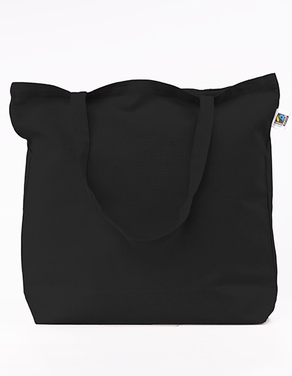 100% Fairtrade-zertifizierte Bio Baumwolle | Sehr robuste Köperbindung | Lange Henkel (ca. 60cm) | Maße: 40 x 46 cm | Breite Bodenfalte (13 cm) | Schwere Grammatur von 310 g/m² | Abgerundete Ecken | Kreuznähte an Henkelverbindung | Stabile Innenverkettung | Fairtrade Siegel außen am Beutel sichtbar | Lieferung ohne Inhalt/Deko