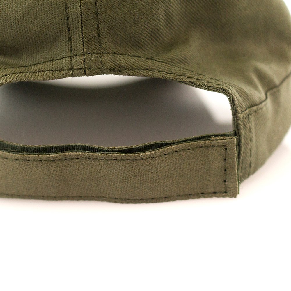 Kappe im Militär-Stil aus gekämmter Baumwolle in schlichten Farben. Mit seitlichen, mit Metallösen verstärkten Belüftungsöffnungen und verstellbarem Klettverschluss.