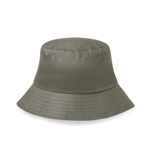 Bobhut aus strapazierfähiger recycelter Baumwolle. Mit gestickten Belüftungslöchern und in verschiedenen Farben erhältlich. Logo aus recycelter Baumwolle auf dem Außenetikett. GRS-Zertifizierung (Global Recycled Standard), die die recycelte Herkunft des zur Herstellung des Produkts verwendeten Materials garantiert.