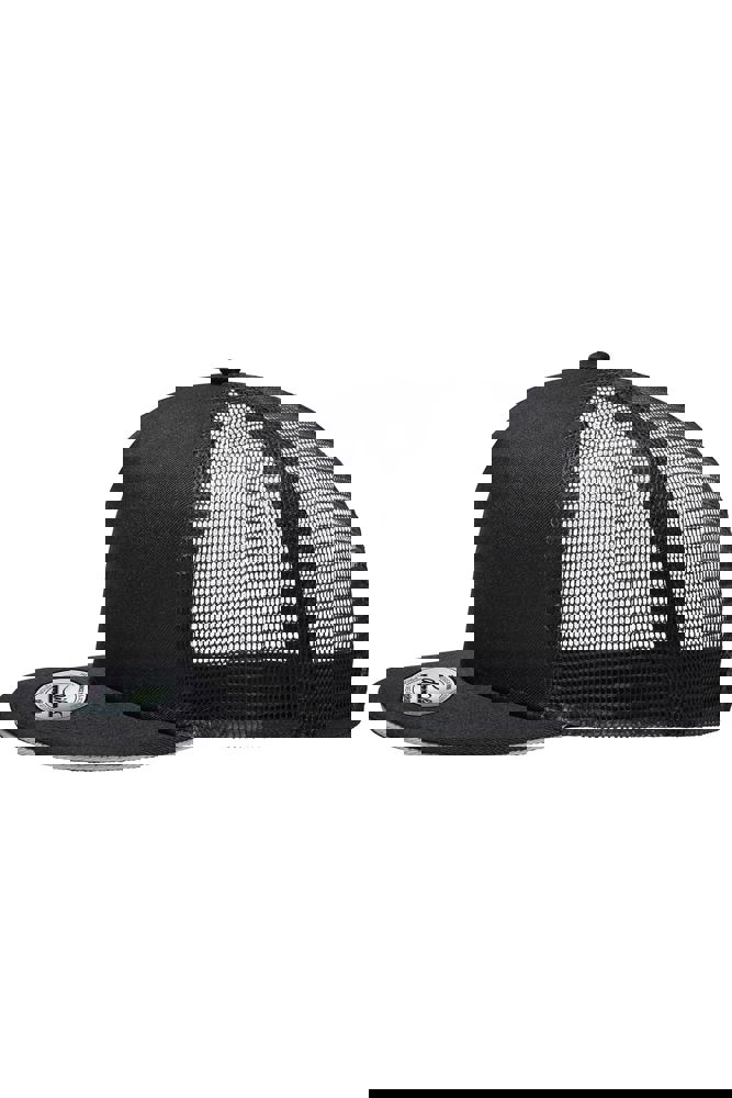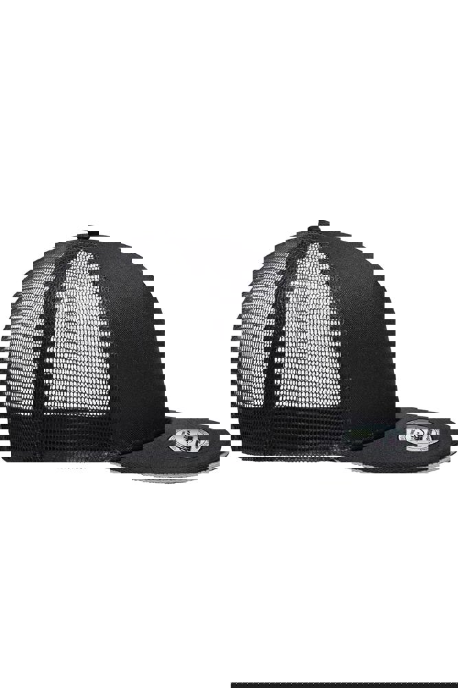 Angesagte "High Profile" Form Gerades Schild mit Sticker und 6 Ziernähten 5 Panels Laminiertes Frontpanel Angenehmer Tragekomfort durch das wattierte Schweißband Größenregulierung durch "click & snap" Verschluss Mesh Caps zum Bedrucken Verschluss: click & snap 5 Panel Cap Frontpannel: laminiert