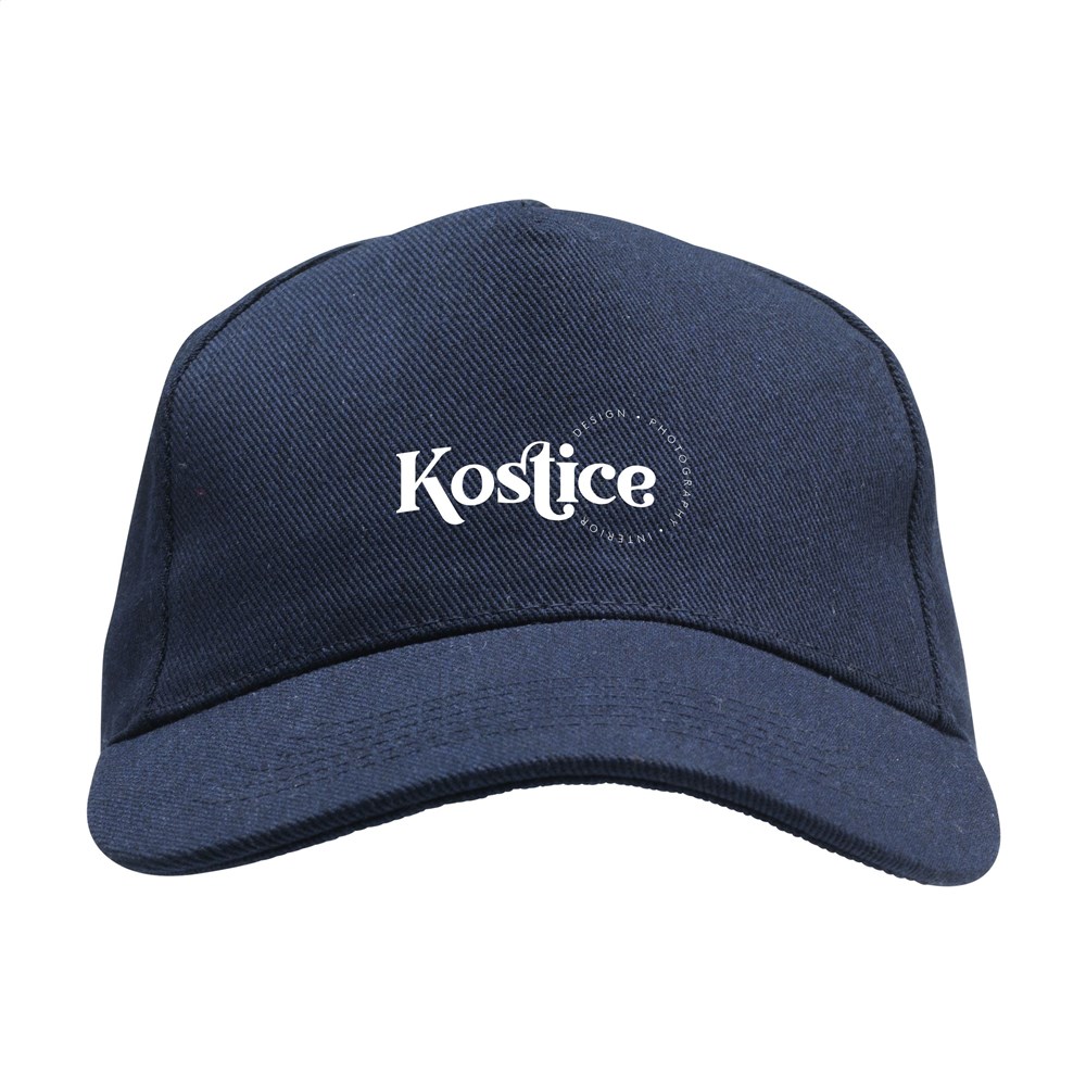 Komfortable Kappe in extra schwerer Qualität. Gefertigt aus 60% recycelter Baumwolle und 40% recyceltes Polyester. Mit vorgeformtem Schirm und verstellbarem Verschluss mit Metallclip auf der Rückseite. Diese Kappe mit 5 Panels hat einen gebogenen Schirm und gestickte Ösen zur Belüftung.