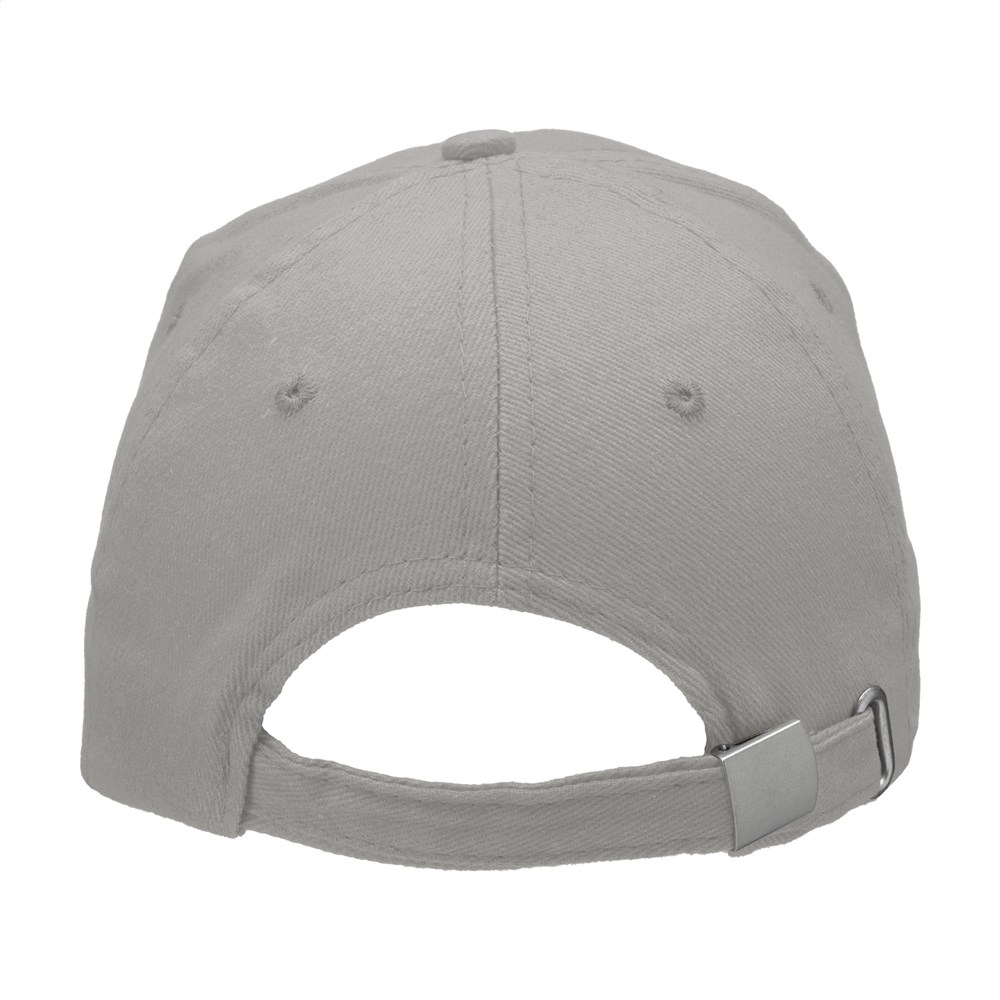 Starke Baseballkappe in besonders schwerer Qualität. Aus 100% gekämmter Baumwolle mit vorgeformtem Schirm und verstellbarem, metallenem Clipverschluss an der Rückseite.