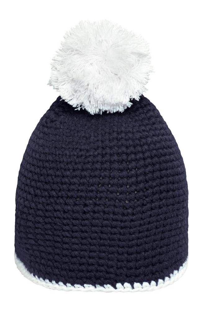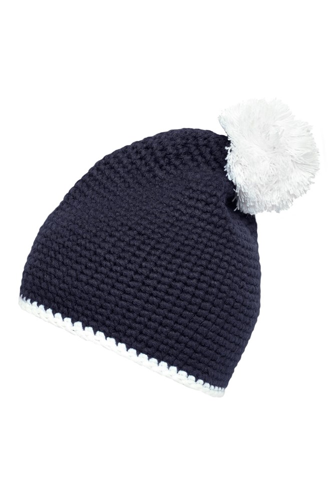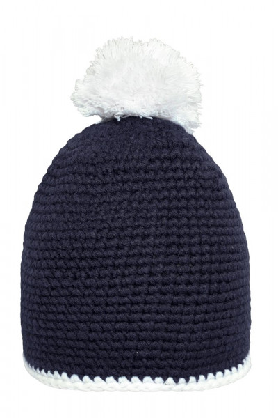 Pompon Hat with Contrast Stripe