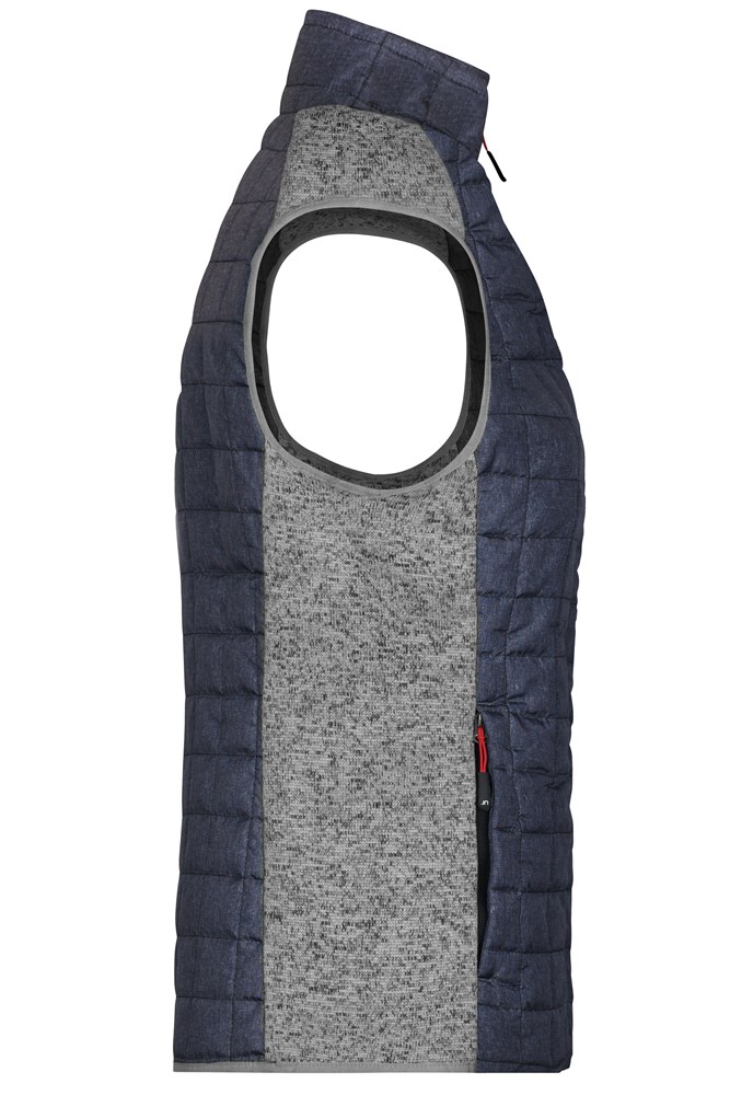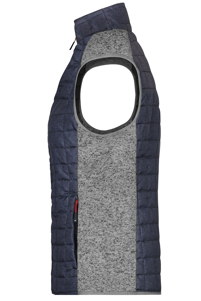 Weiches, wärmendes, pflegeleichtes Material in Melange-Optik Vorder-, Rückenteil und Kragen in gestepptem Karodesign Durchgehend hinterlegter Reißverschluss 2 seitliche Taschen mit Reißverschluss 2 Innentaschen JN739: taillierter Schnitt 1/2 Oberweite: 45 cm 1/2 Saumweite: 46 cm Länge ab Schulter: 63 cm OEKO-TEX® Standard 100 (15.0.70467) Stepp Strickfleece Stehkragen