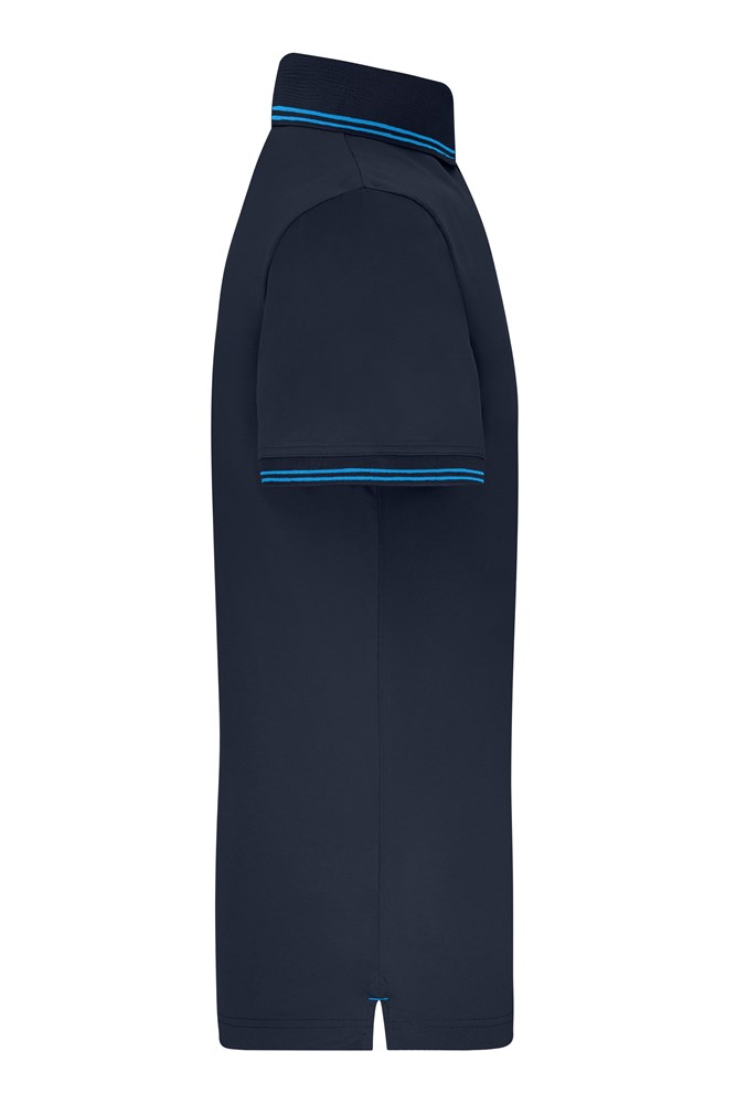Pflegeleichtes Poloshirt aus Polyester Atmungsaktiv, feuchtigkeitsregulierend und schnell trocknend Gestrickter Polokragen und Armbündchen mit Kontraststreifen Seitenschlitze JN721: leicht tailliert, 5 Knöpfe JN722: 3 Knöpfe 1/2 Oberweite: 48 cm Länge ab Schulter: 70 cm Ärmel Länge: 22 cm OEKO-TEX® Standard 100 (15.0.70467) Atmungsaktiv Sublimations-Textilien