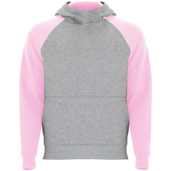 Zweifarbiger Unisex Kapuzenpulli. Kapuze mit gekreuztem Kragen und Metallösen. Innenkapuze, Kordelzug und Raglanärmel in Kontrastfarbe. Kängurutasche. Bündchen und Saum aus elastischem 1×1-Rippstrick. Abnehmbares Etikett.