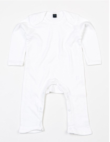 Bio-Baumwolle, gekämmt | Interlock | Langärmeliger Ganzkörper-Strampelanzug | Envelope-Ausschnitt | Ärmelabschluss aus identischem Material | Bein- und Halsöffnung | Beinöffnung mit farblich angepassten nickelfreien Druckknöpfen | Schmale Ziernähte an Arm- und Beinöffnungen