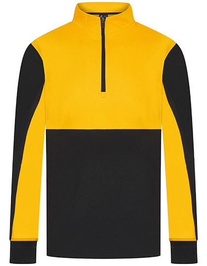 Kontrastierende Einsätze oben an der Brust und an den Ärmeln in Kontrastfarben | 1/4-Reißverschluss | Seitenblenden | Nylon-Reißverschlüsse auf der Rückseite an den mittleren Vorder- und Seitentaschen | 1x1-Ripp-Ärmelbündchen | Halbautomatischer Reißverschluss-Zipper