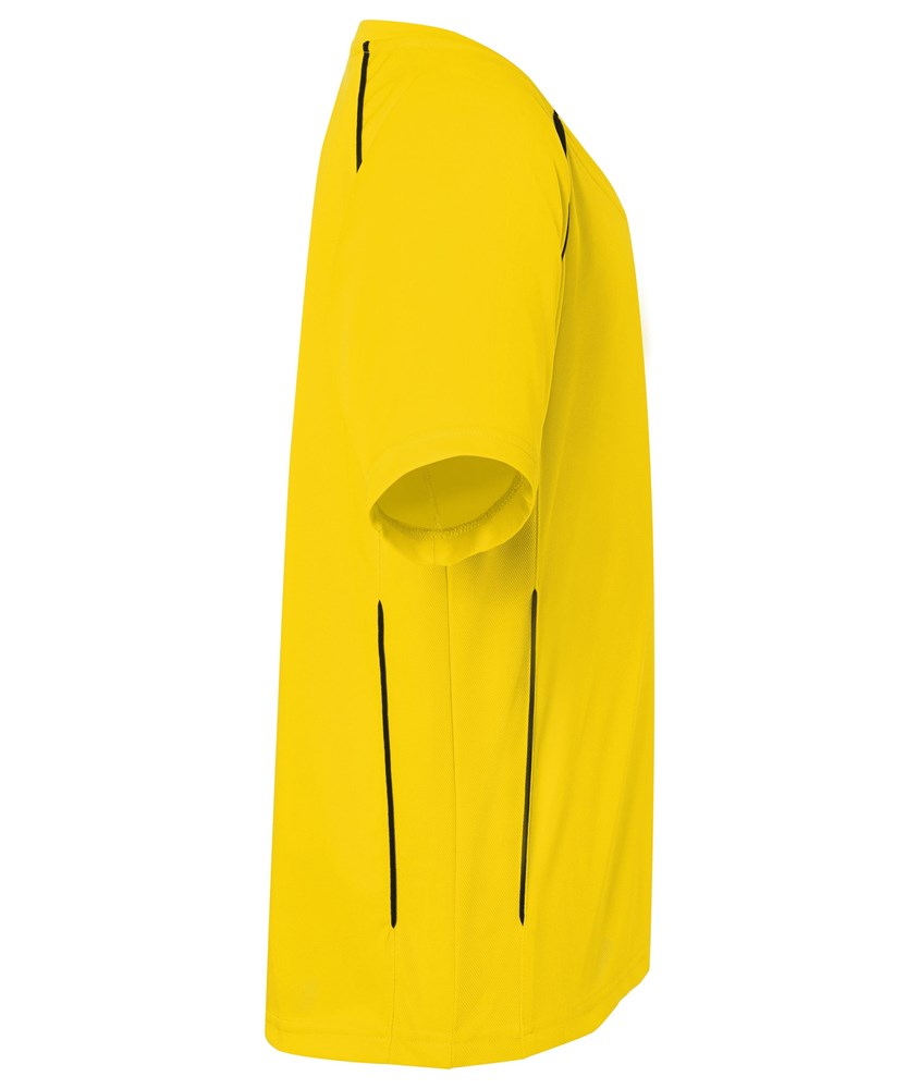 Atmungsaktiv und schnell trocknend Strapazierfähig, pflegeleicht, leicht und komfortabel Kontrastfarbige Paspel Größe: 104 1/2 Oberweite: 35 cm 1/2 Saumweite: 35 cm Länge ab Schulter Vorderteil: 42 cm Länge ab Schulter Rückenteil: 45 cm Ärmel Länge inkl. Schulter: 24 cm Raglan Atmungsaktiv V-Ausschnitt Sublimations-Textilien
