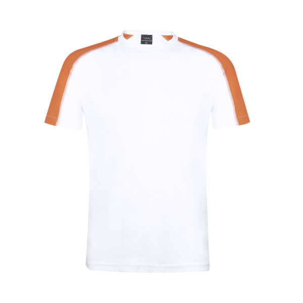 Funktions-T-Shirt für Erwachsene aus dynamischem, atmungsaktivem 100 % Polyester (135 g/m2). Mit originellem Design in Weiß mit farbigen Streifen auf den Ärmeln. Erhältlich in einer Vielzahl von Farben und den Größen S, M, L, XL und XXL.