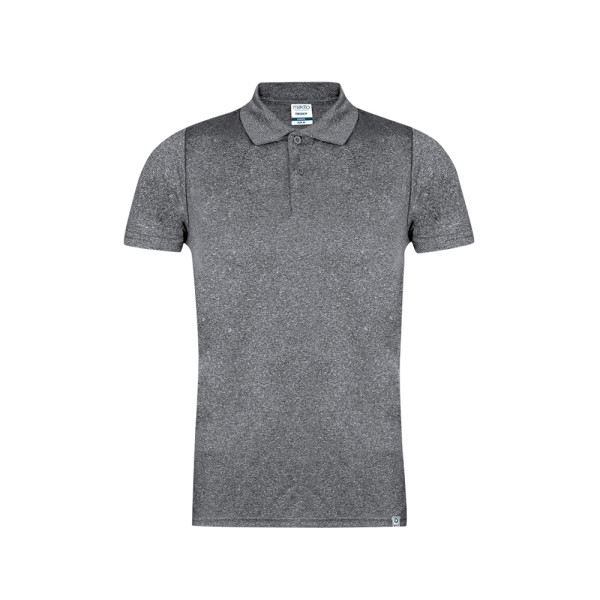 Technisches Unisex-Kurzarm-Poloshirt. Hergestellt aus 100 % recyceltem Polyestergewebe und in Melange-Effekt-Farbe. Mit einer Grammatur von 150 g/m2 ist es ein leichtes Kleidungsstück, ideal für Sport und Alltag. Sehr weicher Griff und moderner Schnitt. Zwei Ton-in-Ton-Knopfleisten. Atmungsaktiver Stoff, leicht zu waschen und schnell trocknend. Doppelnähte an Saum und Ärmeln sorgen für Langlebigkeit und Widerstandsfähigkeit bei intensiver Nutzung. Leicht ablösbares Etikett. Mit äußerem RPET-Etikett, das auf ein recyceltes Produkt hinweist. Erhältlich in den Größen XS, S, M, L, XL und XXL.
