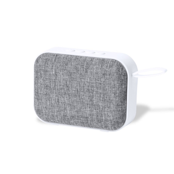 Lautsprecher mit Bluetooth® 5.0-Verbindung im Zweifarbigem-Design, mit Polyester-Gitter und farblich passendem Silikon-Tragegriff. Liefert 3 W Leistung, mit Freisprechfunktion und FM-Radio-Funktion. USB-Player und Steckplatz für Micro-SD-Karte mit bis zu 32 GB Kapazität. Hilfsleitungseingang über 3,5-mm-Klinkenanschluss und rutschfesten Sockel. Kompatibel mit iOS und Android, einschließlich Mikro-USB-Ladekabel, und in einer breiten Palette von Farben erhältlich. Präsentiert in einer attraktiven Design-Box.