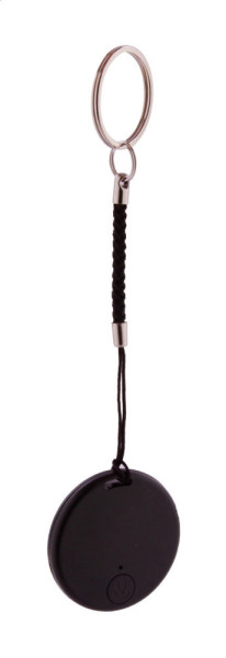 Drahtloser Schlüsselfinder mit Kameraverschluss, in einem runden Kunststoffgehäuse. Mit Schnur und Metallschlüsselring. Mit Knopfzellenbatterie. Funktioniert mit einer kostenlosen iOS / Android App.