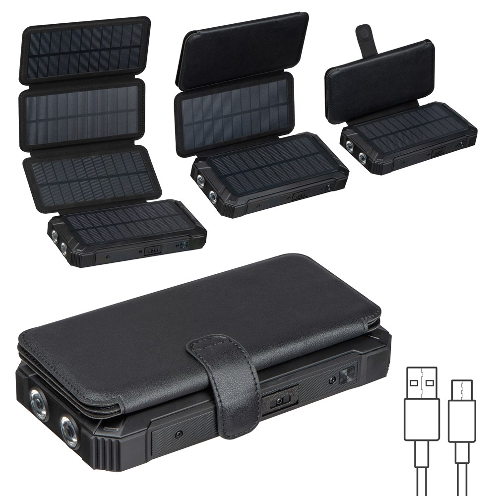 Vier ausklappbare Solarpanels: Die Solarpanels bieten eine effiziente Möglichkeit, die Powerbank über Sonnenenergie aufzuladen, ideal für unterwegs, beim Camping oder in Notfällen.