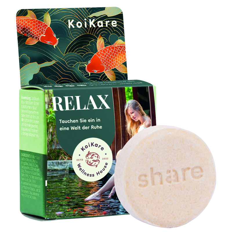 Werbecover aus weißem Karton, individuell bedruckt. Inhalt: 1 share feste Dusche (original verpackt) mit Limette & Zitronengras, 60 g
