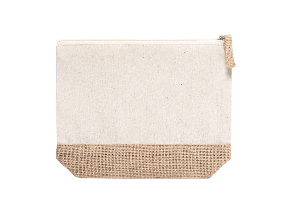 Reißverschluss-Kosmetiktasche aus Baumwolle und laminierter Jute.