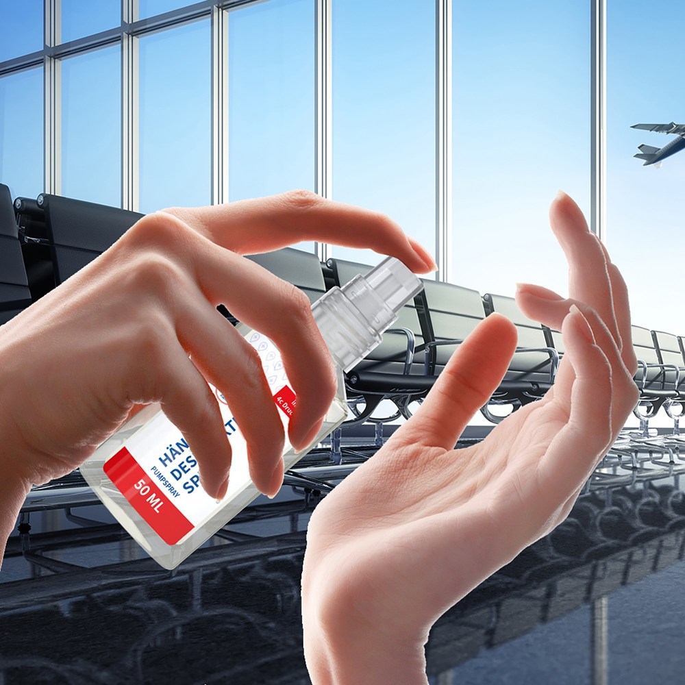 Hände-Desinfektionsspray (DIN EN 1500), 50 ml, Body Label (R-PET)