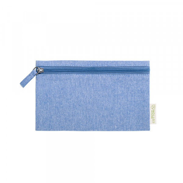 Nature Line Kosmetiktasche aus recycelter Baumwolle. Hauptfach mit Reißverschluss und Anhänger, mit Etikett aus recycelter Baumwolle.